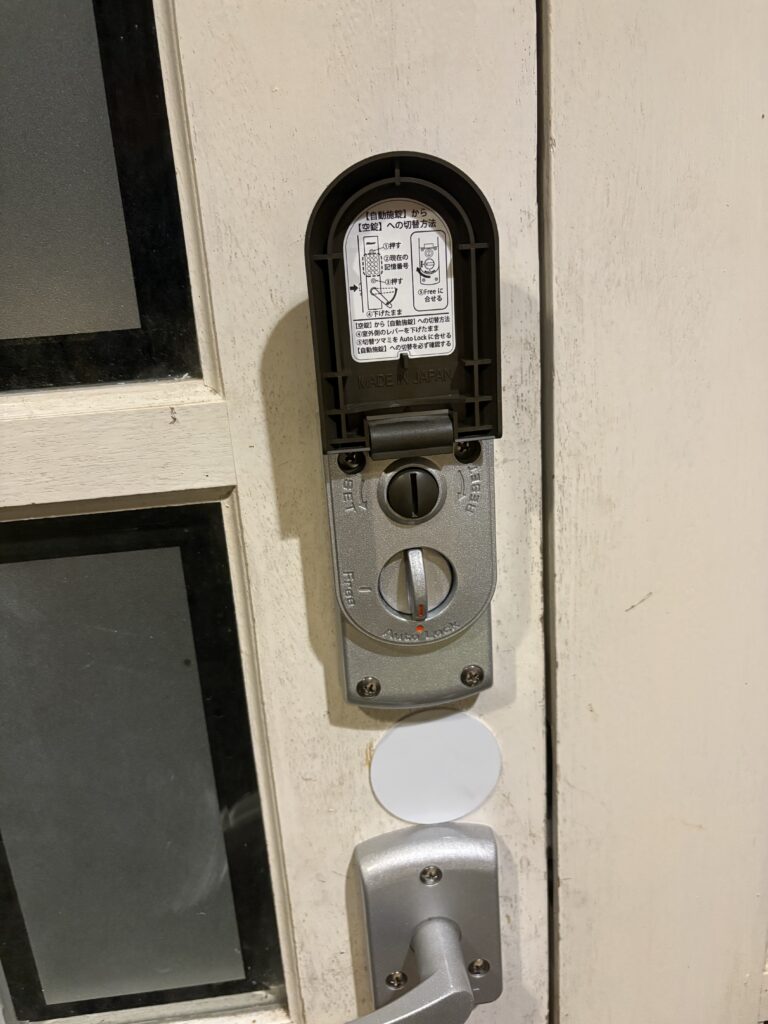 入室後、ドア裏側のツマミをFreeに回すと、解錠状態となります。